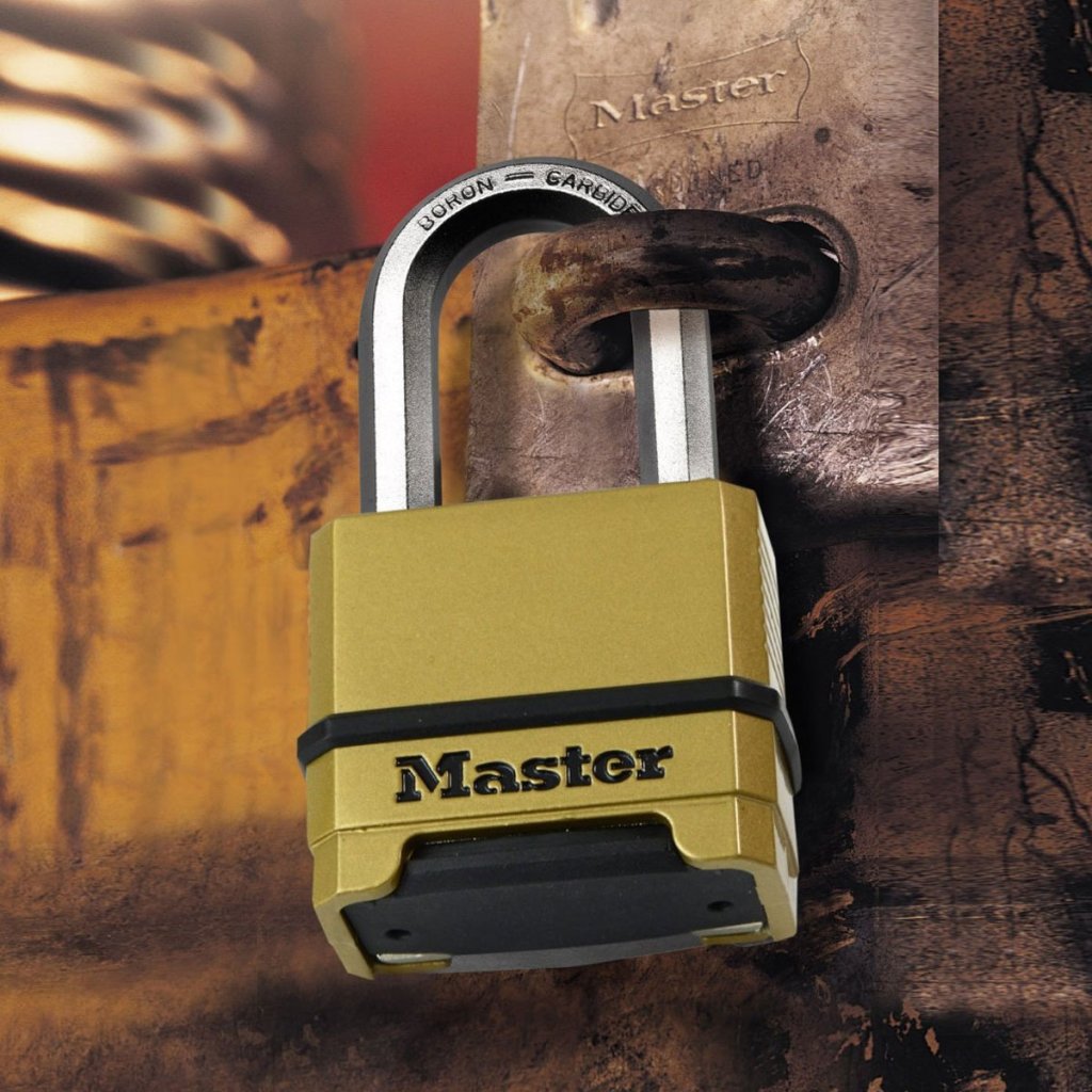 Visací zámek značky MASTER LOCK řady Excell disponuje nastavitelným 4-místným kódem. Má 56 milimetrů široké tělo ze slitiny zinku s mosaznou úpravou. Jeho 9 milimetrový třmen s osmiúhelníkovým profilem je vyrobený z karbid-boru. Je perfektní pro zabezpečení garáže, bran, branek nebo venkovních budov.