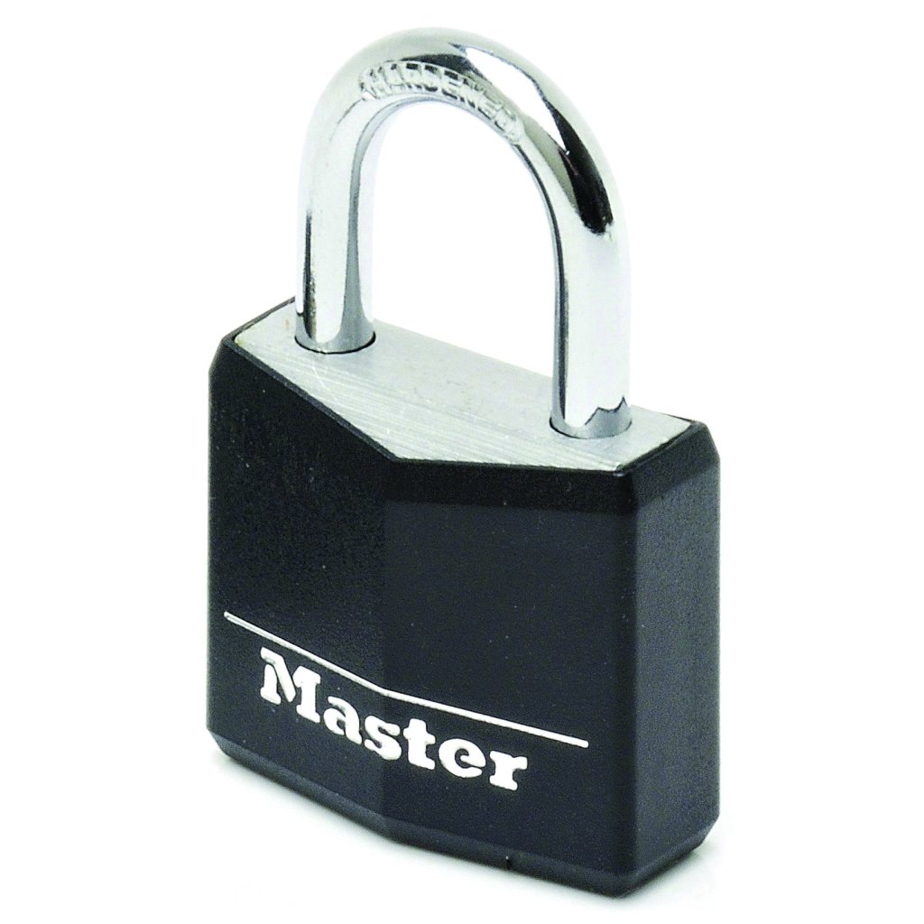 Visací zámek Master Lock je hliníkový visací zámek o průměru 20 mm. Zámek má kalené poutko o průměru 3 mm a délce 11 mm. Masivní hliníkové tělo s černým krytem chrání před poškrábáním a korozí. Perfektní pro uzamykatelné skříňky, kontejnery, regály apod. Klíče jsou součástí balení.