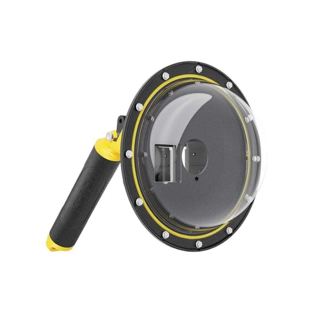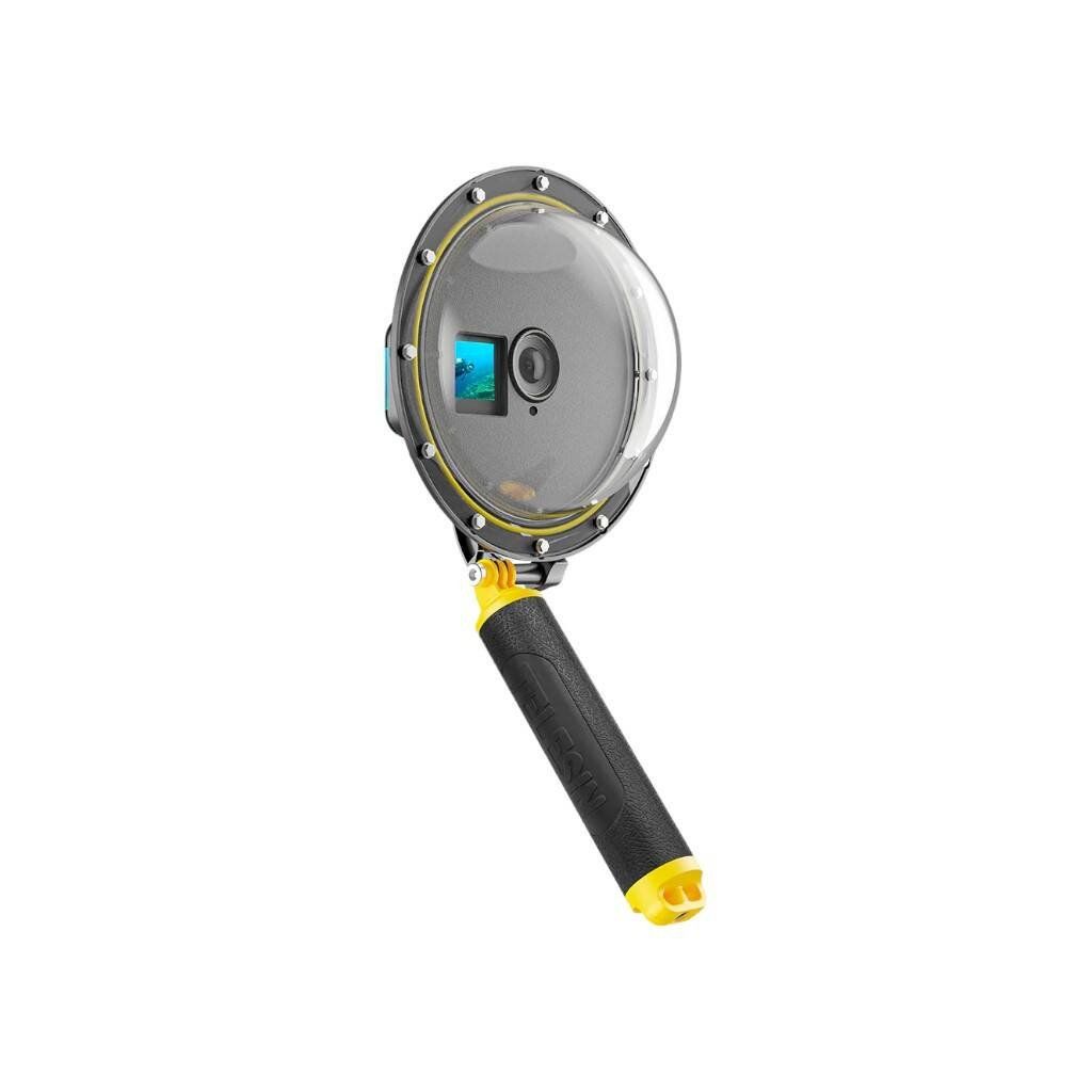 Podvodní pouzdro TELESIN vám umožňuje pořizovat jedinečné fotografie a videa podvodního světa. Díky půlkruhovému designu můžete dosáhnout efektu akvária s poměrem záběrů 50/50, což vám umožní zachytit podvodní i nadmořskou krajinu současně..