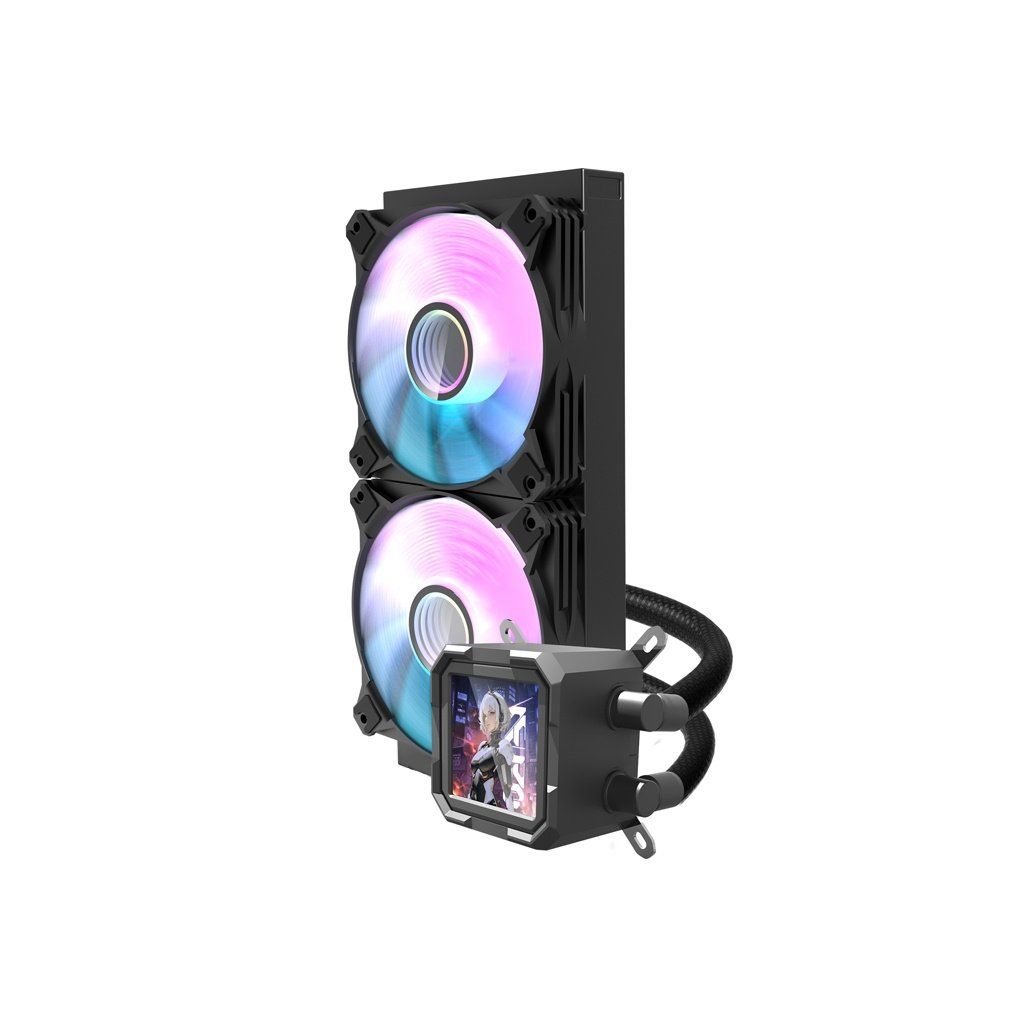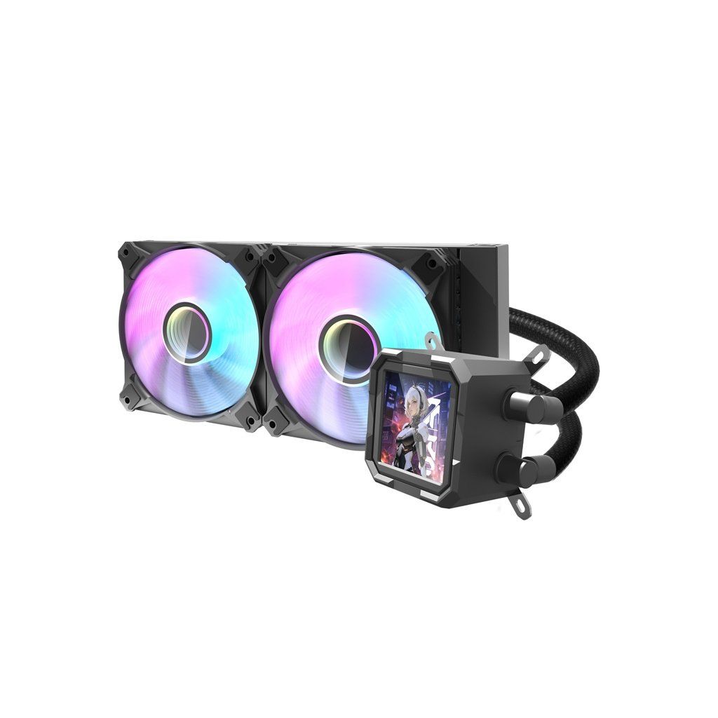 Chladič je vybaven působivým displejem IPS LCD s rozlišením 320 x 320 pixelů, který se vyznačuje hranatým tvarem. Na rozdíl od tradičních kulatých obrazovek nabízí tento model přirozenější, estetičtější prezentaci dat, která harmonicky ladí s modernistickým vzhledem herních počítačů. Panel IPS zaručuje realistickou reprodukci barev a vynikající čitelnost z jakéhokoli úhlu. S Darkflash DV240S získáte jasný a pohodlný přístup k nejdůležitějším informacím o vašem hardwaru.