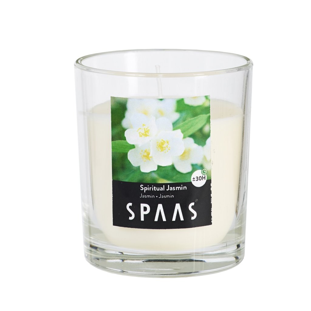 Vonná svíčka SKLO 7x7,7cm jasmín SPAAS