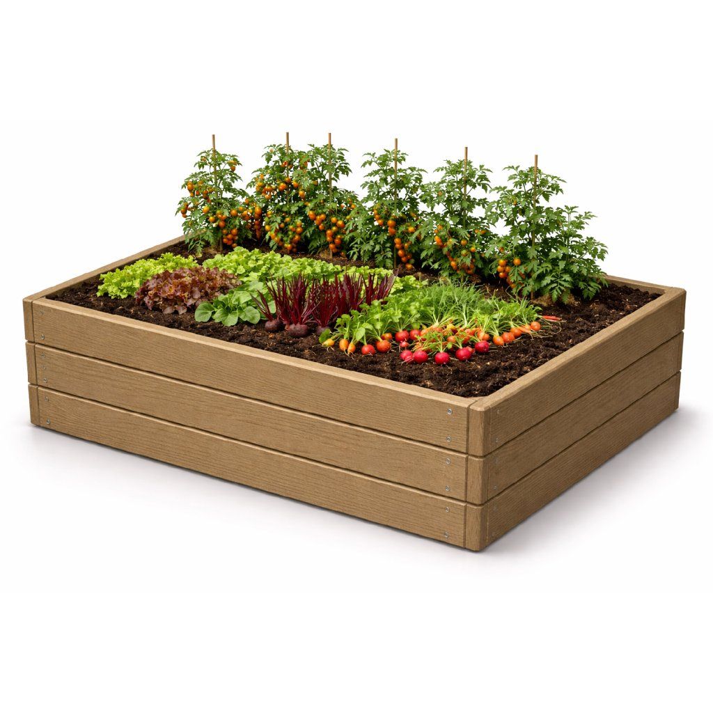 ✔ Realistický design – Imitace dřeva dodává přirozený vzhled, který skvěle zapadne do každé zahrady.