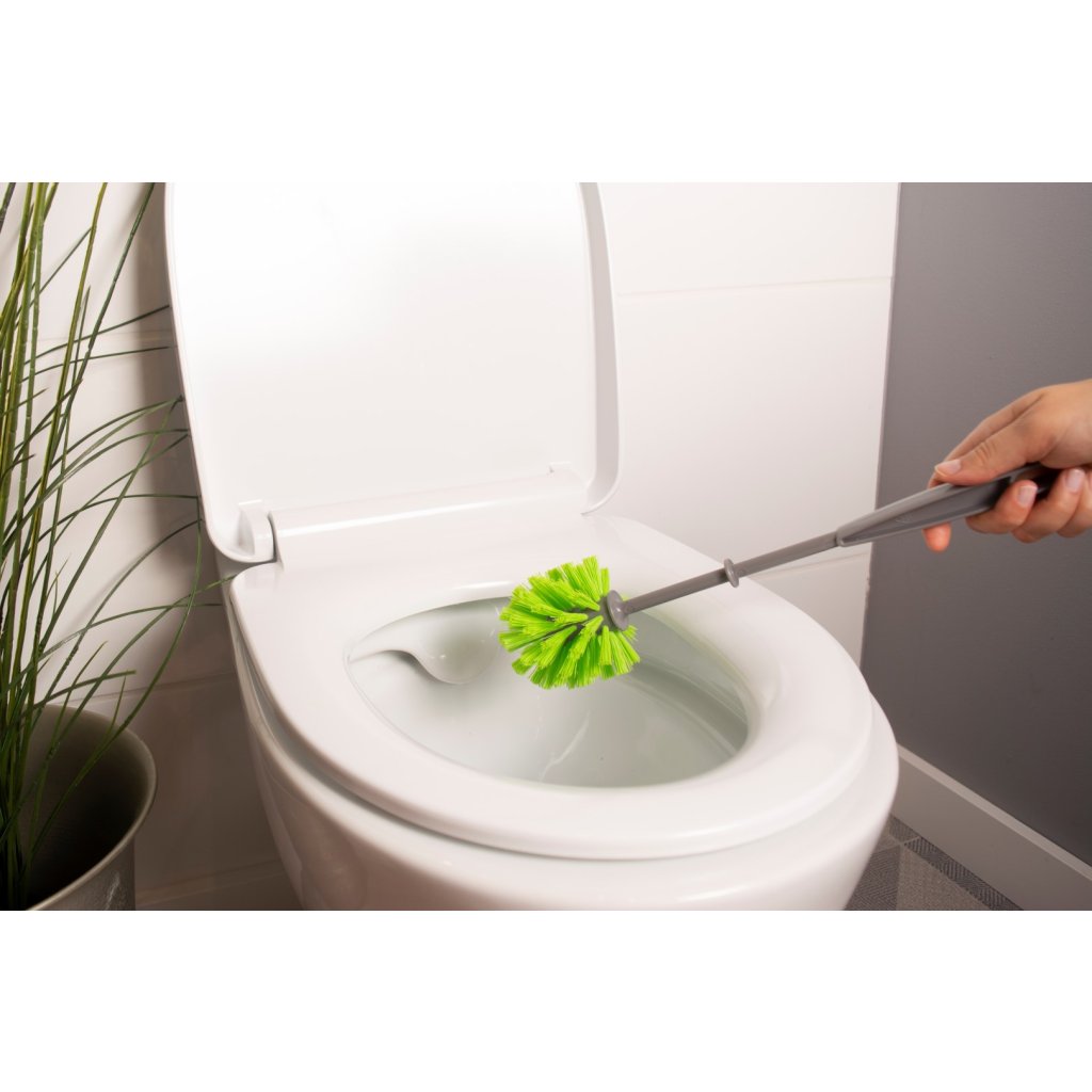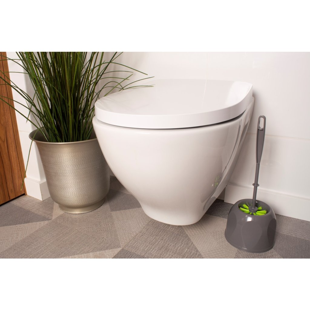 Základna je vyrobena z regranulátu – 100% recyklovaného post-produkčního materiálu, takže s každým úklidem šetříte zdroje a snižujete odpad. Profilované štětiny snadno dosáhnou do všech koutů mísy a poradí si i s odolnějšími nečistotami, zatímco tvarovaná rukojeť zajistí pevný a pohodlný úchop. Moderní kalíšek je kompaktní a usnadňuje skladování, takže set působí čistě a nenápadně v každé koupelně či na toaletě.