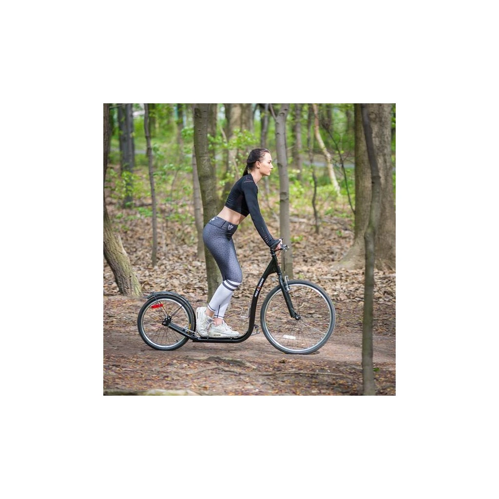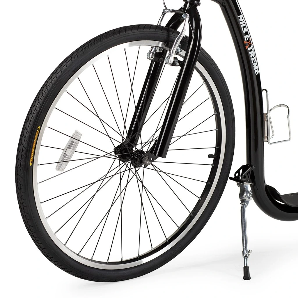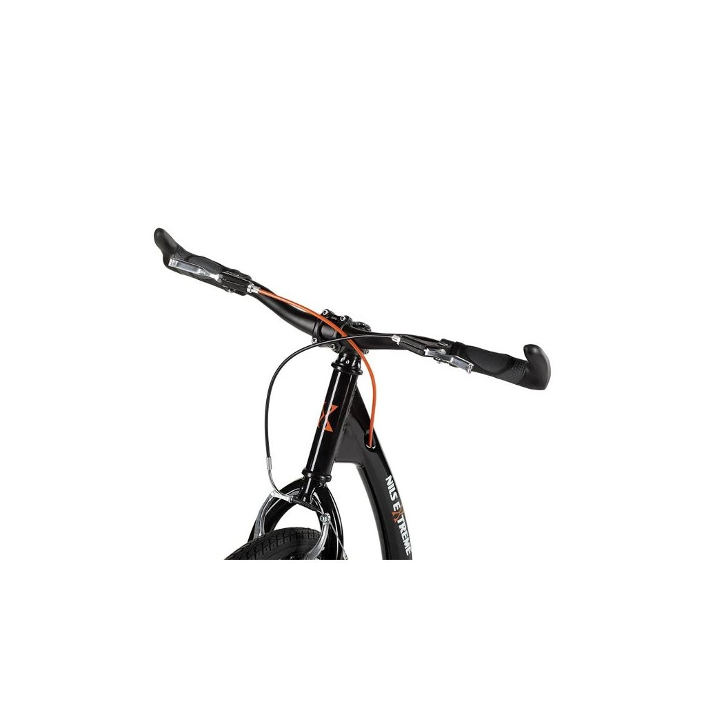 Koloběžka NILS Extreme WHS261 je ideálním prostředkem pro zdolávání městských uliček, dlážděných chodníků a lesních stezek. Model WHS260 je koloběžka se sportovním charakterem. Díky nosnosti 120 kg si ji může užívat celá rodina. Rám je vyroben z kvalitní oceli, na ráfky jsou obuty pneumatiky s duší a pro maximální bezpečnost je koloběžka vybavena brzdami typu V-brake. Tyto vlastnosti koloběžku přímo předurčují k použití na asfaltu, dlažbě, ale i na štěrku a nezpevněných stezkách. Integrovaný stojánek pak usnadňuje parkování koloběžky a velké přední kolo zlepšuje ovladatelnost a prostupnost terénem.V zadní části rámu se nachází dvojitá patka, která umožňuje měnit náklon koloběžky podle toho, zda chceme jezdit bezpečněji v lehkém terénu a nebo rychleji po rovné silnici.