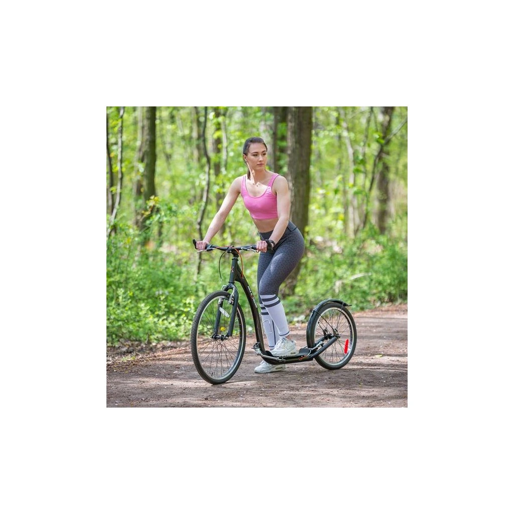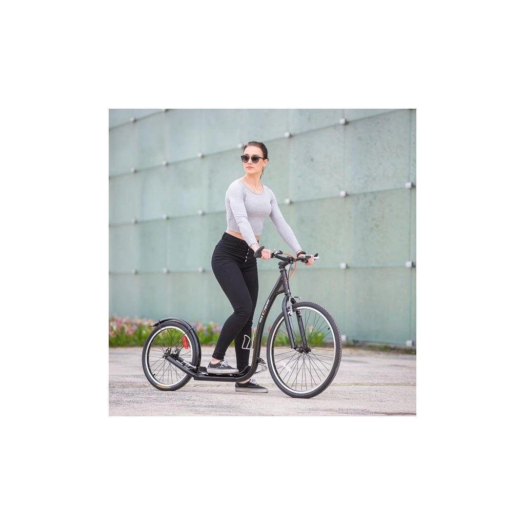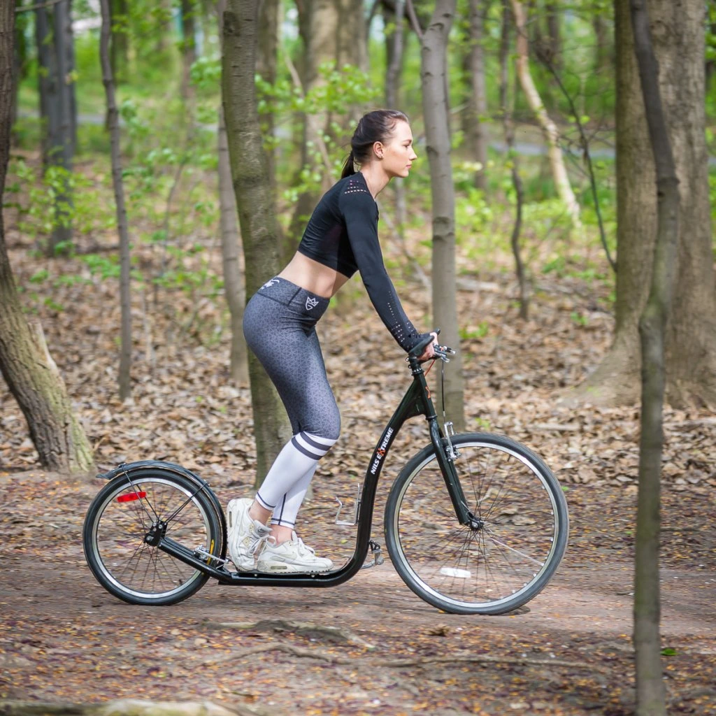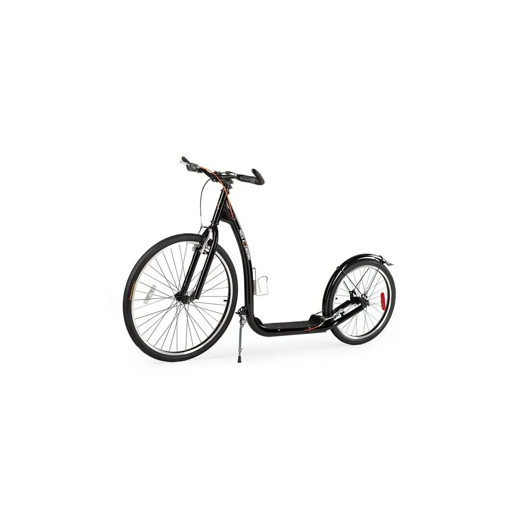 Koloběžka NILS Extreme WHS261 je ideálním prostředkem pro zdolávání městských uliček, dlážděných chodníků a lesních stezek. Model WHS260 je koloběžka se sportovním charakterem. Díky nosnosti 120 kg si ji může užívat celá rodina. Rám je vyroben z kvalitní oceli, na ráfky jsou obuty pneumatiky s duší a pro maximální bezpečnost je koloběžka vybavena brzdami typu V-brake. Tyto vlastnosti koloběžku přímo předurčují k použití na asfaltu, dlažbě, ale i na štěrku a nezpevněných stezkách. Integrovaný stojánek pak usnadňuje parkování koloběžky a velké přední kolo zlepšuje ovladatelnost a prostupnost terénem.V zadní části rámu se nachází dvojitá patka, která umožňuje měnit náklon koloběžky podle toho, zda chceme jezdit bezpečněji v lehkém terénu a nebo rychleji po rovné silnici.