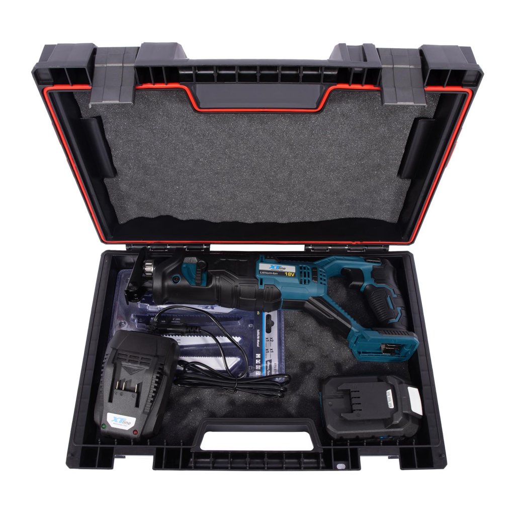 XTLINE Aku mečová pila 18 V + baterie 2.0 Ah + nabíječka 2.4 A + pilové plátky + box XTline