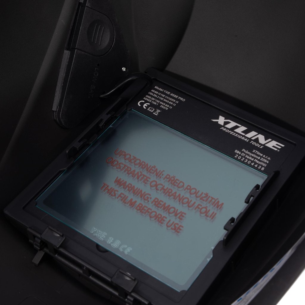 Samostmívací svářečská helma ochranná pracovní pomůcka nové generace. Jsou zde využity nové a vysoce vědecké a technologické poznatky jako LCD, optoelektronická identifikace, solární dobíjení, mikroelektronika atd. Samostmívací svářečská helma jenom efektivně nechrání svářečovi oči od škodlivých záblesků elektrického oblouku, ale díky ní má svářeč obě ruce volné a může je používat k přesnému sváření. Proto může podstatně stoupat kvalita výkonané práce. Tato helma má široké užití při různém sváření, řezání, stříkání, vyřezávání drážek elektrickým obloukem atd. Možnost ochrany svařování metodou TIG. Nový model optického filtru YXE-958E (true color) umožňuje reálné barvy na celém barevném spektru, věrné podání červené, žluté, modré a zelené barvy. Optický filtr má větší průzor pro lepší vidění při práci s kuklou. -solární článek pro napájení samostmívacího filtru, norma CE (EN 169-379-) - kompletní ochrana hlavy i krku a nízká hmotnost Ovládání kukle -nastavení filtrů -nastavení citlivosti -nastavení zpoždění -přepínačbroušení - svařování Optika umožňuje reálné barvy na celém barevném spektru, věrné podání červené, žluté, modré a zelené barvy