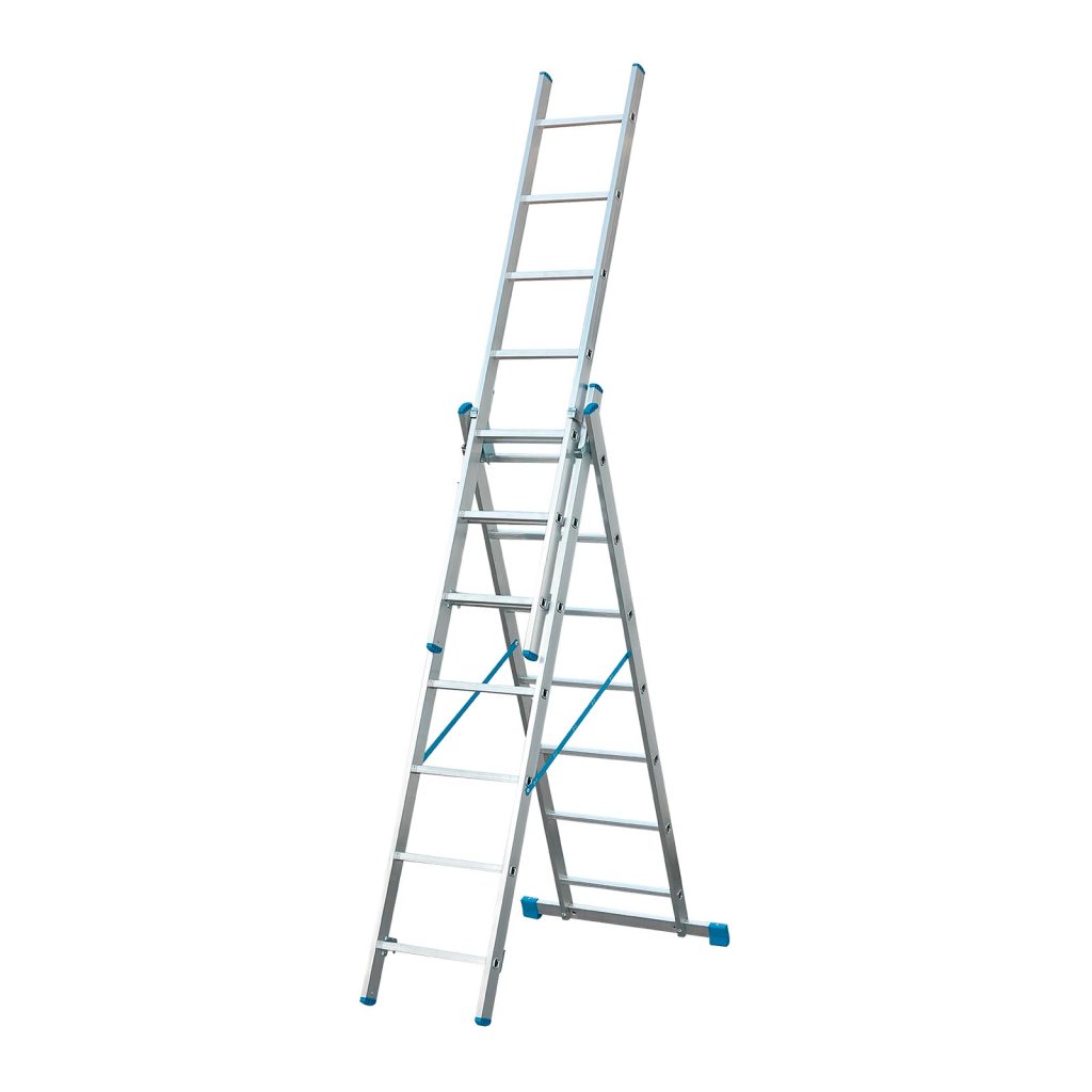 Trojdílný žebřík vyniká svou univerzálností a rychlou a snadnou manipulací. Lze použít jako jednoduchý, dvojitý nebo trojitý výsuvný a samostatně stojící žebřík. V poloze štaflí nabízí zvětšení dosahu pomocí vysunutí pohyblivého dílu. Žebřík lze postavit na schody, meze a výškově rozdílné terény. Kvalitní hliníkové profily s prolisy umožňují při nízké váze žebříku jeho tuhost při používání. Pojistka pro zajištění jednotlivých dílů žebříku. Možnost využití žebříku ke schodové úpravě.
