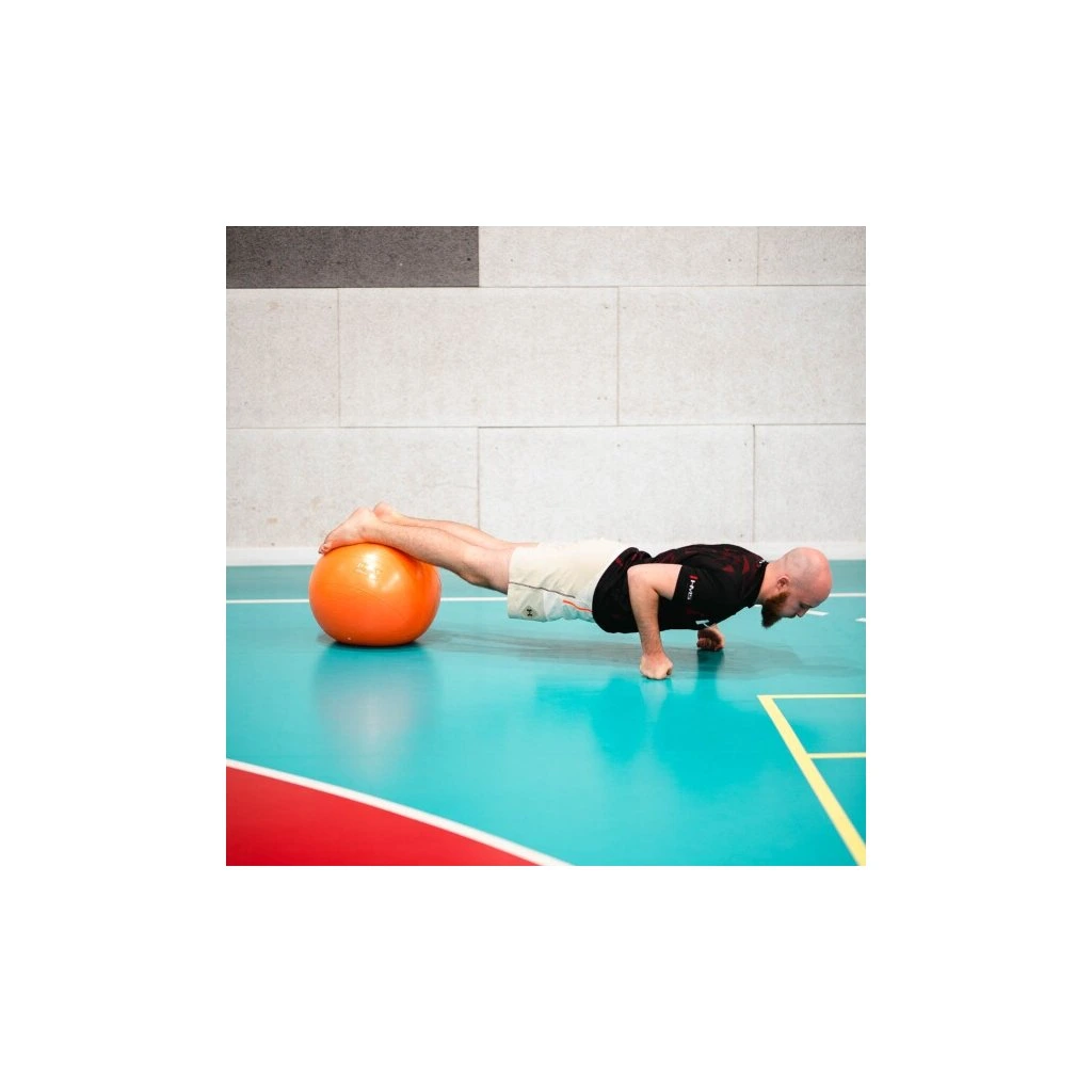 Gymnastický míč je vyroben z PVC v úpravě Anti-Burst. Technologie Anti-Burst zamezuje zvětšování případné trhliny a míč se tak, pokud dojde k poškození, vyfukuje velice pomalu. Protiskluzový povrch míče zaručuje pohodlný trénink. Součástí balení je ruční pumpička, pomocí které lze míč nafouknout, špunt a přípravek pro vyjmutí špuntu z míče. Průměr míče by měl odpovídat výšce postavy, pro správný výběr naleznete níže přehledovou tabulku.