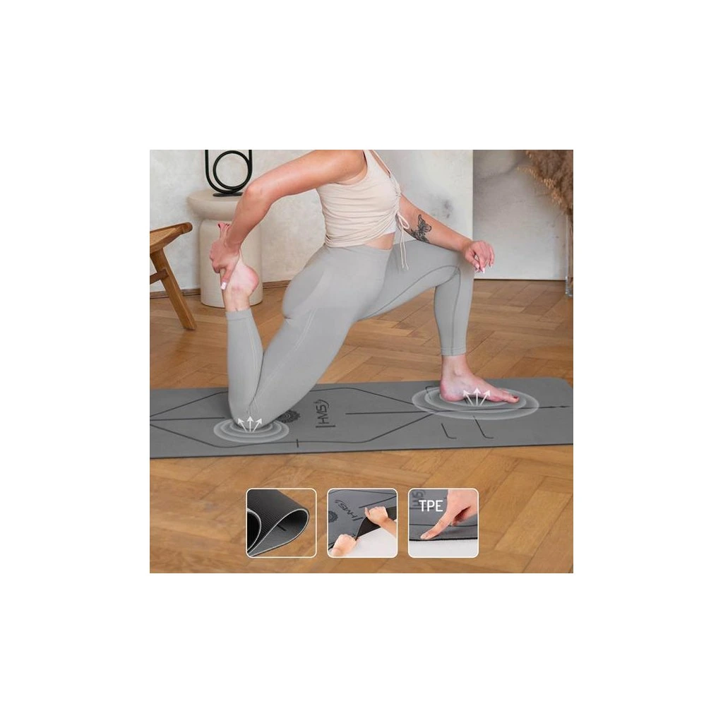 Podložka na jógu YM10 je vyrobena ze dvou vrstev TPE, který zaručuje vynikající přilnavost a odolnost proti deformaci. Poskytuje výjimečnou měkkost a odpružení, díky čemuž je cvičení pohodlnější i během dlouhých sezení. Díky protiskluzovému povrchu je podložka bezpečná a její voděodolnost usnadňuje čištění. Díky svým kompaktním rozměrům (182 x 61 x 0,8 cm) je ideální volbou pro cvičení uvnitř i venku. Podložka je navíc lehká a snadno se přenáší díky přiloženým transportním popruhům.