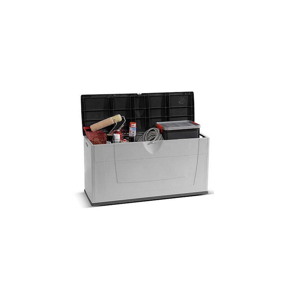 Skladovací box s názvem Karisma značky KIS je vyrobený z extra odolného plastu v šedé barvě. Je to box velkých rozměrů, který pojme až 200 litrů objemu. Můžete jej využít například na uskladnění zahradního nářadí nebo pro uložení letního piknikového vybavení či vybavení v dílně. Sestavíte i rozeberete ho během pouhých pěti minut a to bez použití nářadí. Navíc ho lze zabezpečit visacím zámkem (není součástí balení). Lze ho využít i v exteriéru (do - 5°C)