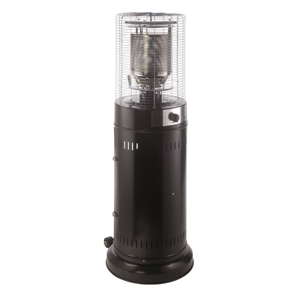 Zahradní stylové topidlo Vesuv v černém provedení s nerezovými prvky s příslušenstvím na připojení propan-butanové lahve. Zahradní terasové topidlo na Propan-Butan v nerezovém provedení poskytuje dostatek tepla a příjemné dekorativní osvětlení.