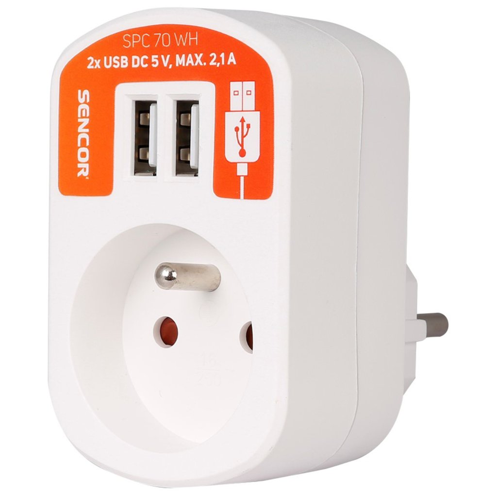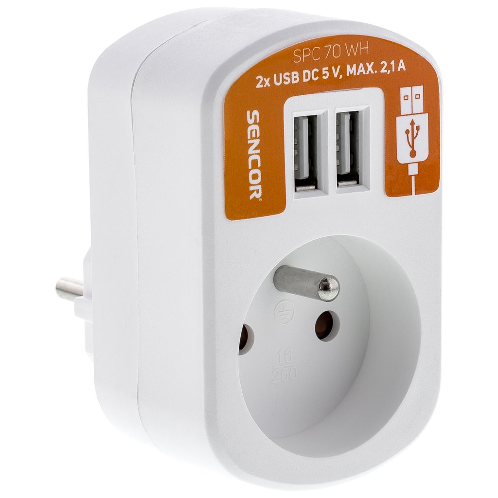 Zásuvka v bílém barevném provedení od značky SENCOR. Zásuvka 16 A / 250 V50 Hz se dvěmi USB výstupy.Základní vlastnostiZásuvka2x USB16 A/250 V – 50 MHz: max.: 3680 WUSB výstup: DC 5 V: max.: 2 1 A