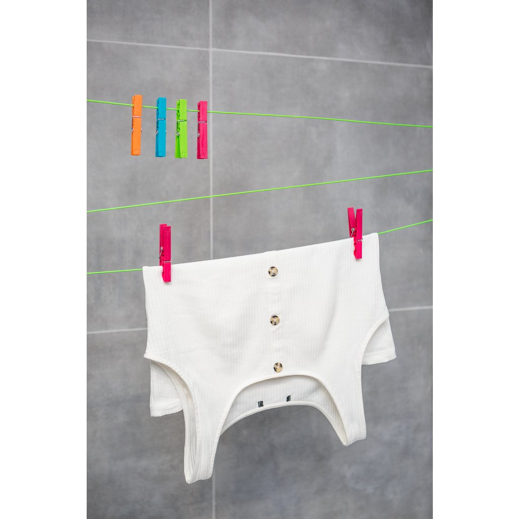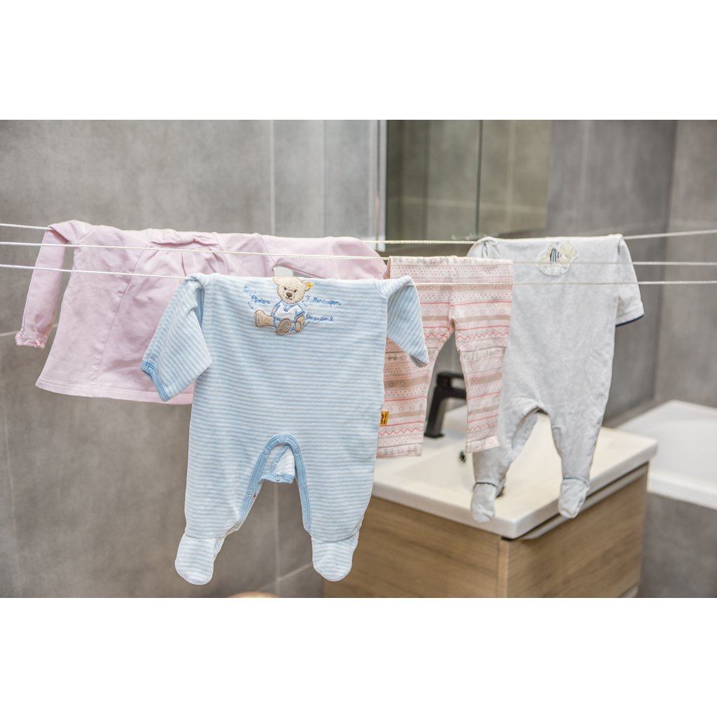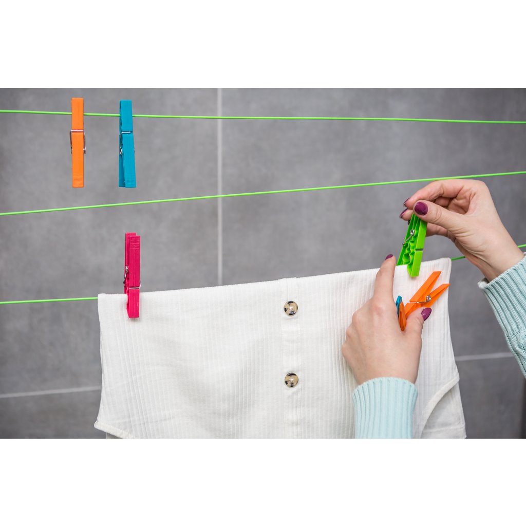 Ideální volba pro byty, rodinné domy, chalupy i kempování – všude tam, kde potřebujete pevnou, odolnou a bezpečnou šňůru na prádlo.