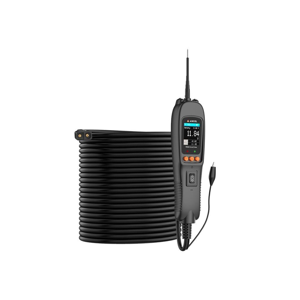 Ancel PB500 je kompaktní zkoušečka obvodů pro aplikace 12-24 V. Nabízí 7 diagnostických režimů, včetně měření střídavého/stejnosměrného napětí, testu odporu a diod, testu frekvence, pracovního cyklu a testů obvodů vstřikovačů. Barevný TFT displej umožňuje analýzu parametrů v reálném čase a rychlejší lokalizaci závady.